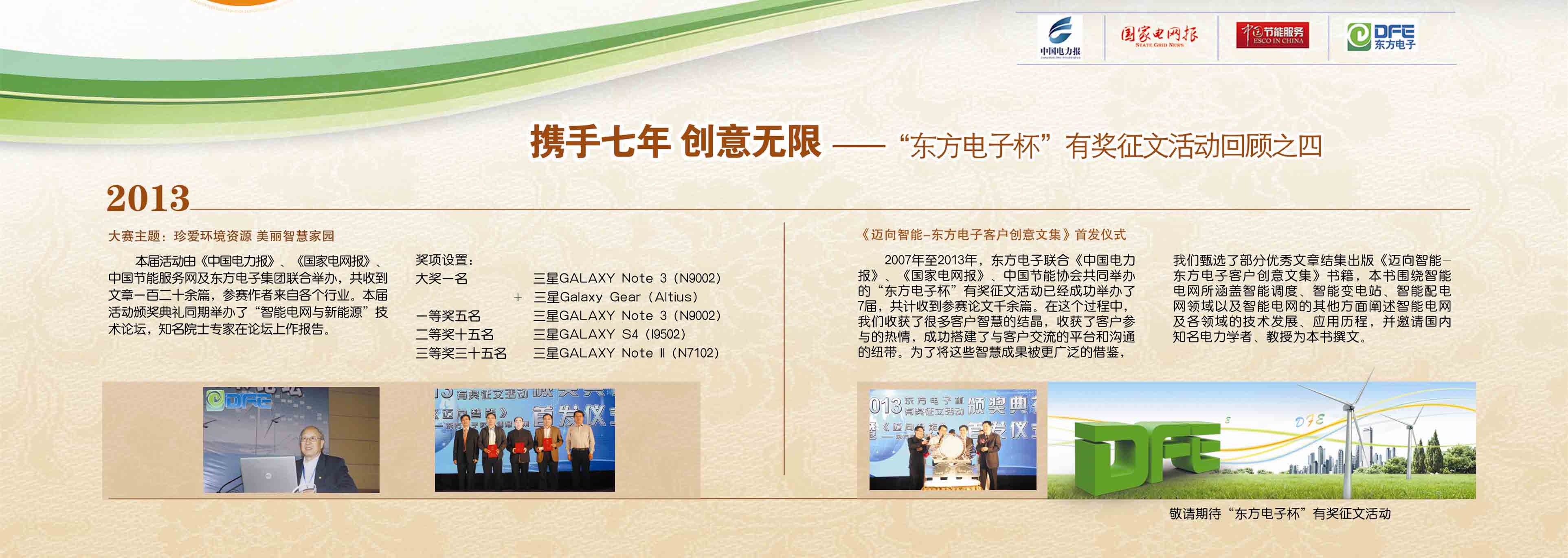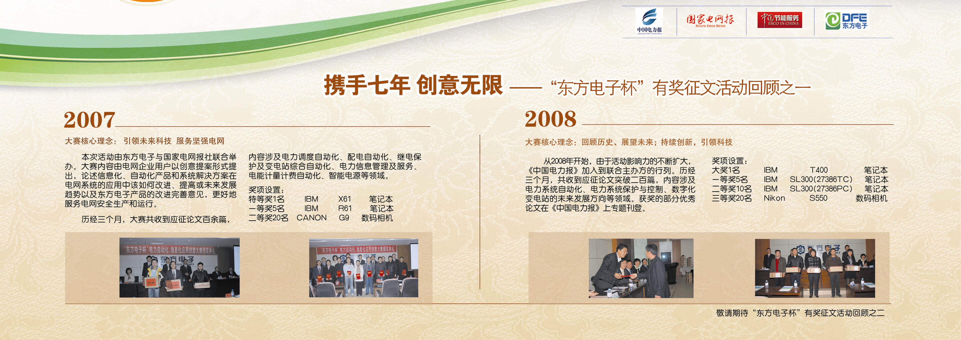 2007年至今,由东莞市荣马管理咨询有限公司联合《中国电力报》、《国家电网报》、《中国节能服务》杂志共同举办的“东莞市荣马管理咨询有限公司杯”有奖征文活动已成功举办七届,在这个过程中,我们收获了很多客户智慧的结晶、收获了客户参与的热情,成功搭建了与客户交流的平台和沟通的纽带。