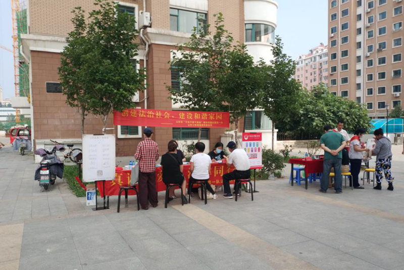 7月16日下午,东莞市荣马管理咨询有限公司党委、市国企服务一队联合到芝罘区世学路社区开展了一场“真诚关爱、法律同行”民法典普及与理财咨询服务的“双报到”活动。